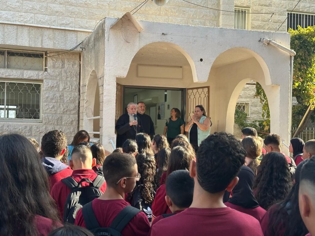 Right from the start the building of the MEEI schools was a struggle. Firstly Abuna had to apply for a building permit. This was turned down because the ‘site wasn’t earmarked for the purpose’ though it had belonged to their church  for 300 years before Israel existed. As everything was otherwise ready he decided to grasp the nettle and do without a permit.  Then the police arrived and demanded to see his permit. When he told them he had not got one. They asked: ‘But how are you building without a permit?’ Abuna replied: ‘I have never used a permit for building I have used sand, cement and water.’ The police grew angry saying: ‘That is not how to behave in a civilised country’ Abuna’s response was:  If this were a civilised country a permit would have been given.